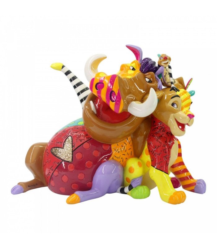 Timon et Pumbaa font leurs débuts à Disney Britto avec Simba dans cette sculpture éblouissante. Célébrez le film majestueux avec cette interprétation pop art du Roi Lion.