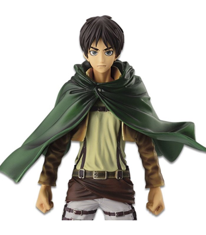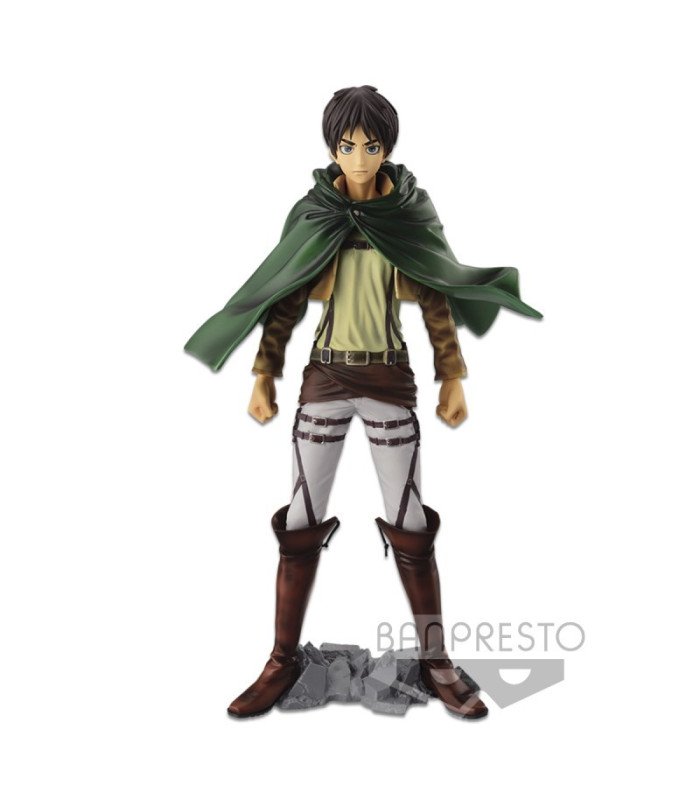 Banpresto presente cette figurine d'Eren Yeager basee sur la serie Attack on Titan" pour sa collection Masters Stars Piece. C'est une figurine en PVC qui mesure environ 26 cm et est livree avec une base de support."