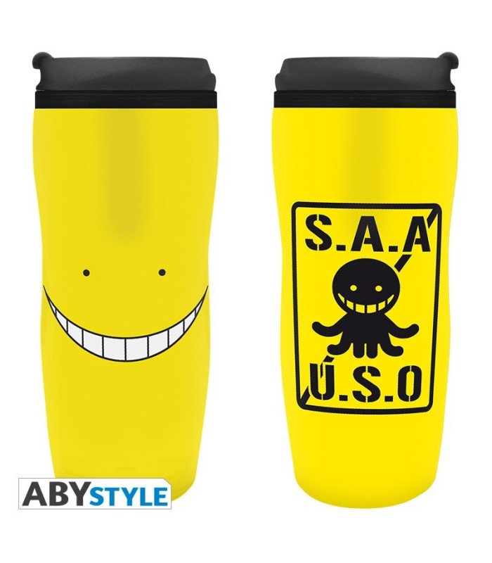 Pour pouvoir facilement transporter votre boisson favorite pour vous rendre en cours, ABYstyle a pensé à vous avec ce mug de voyage Assassination Classroom à l'effigie de votre professeur préféré, Koro-sensei.